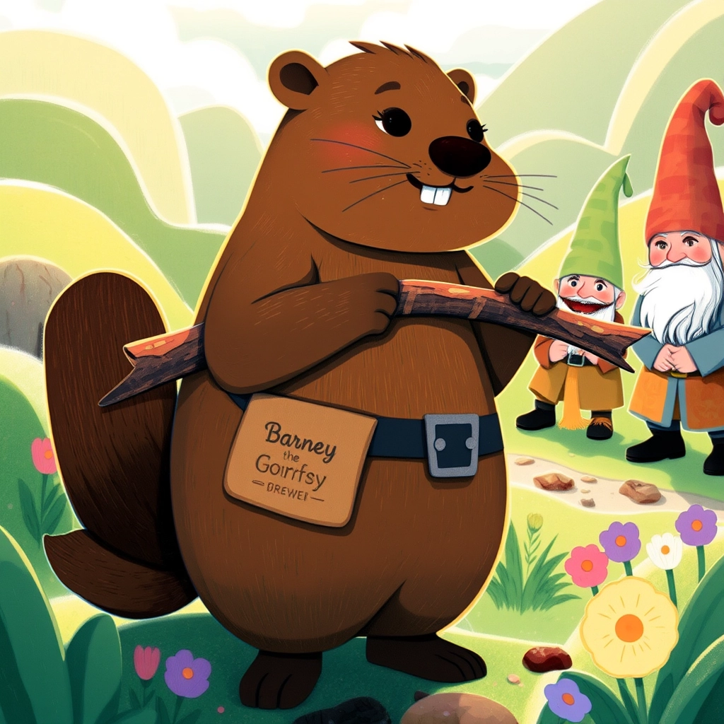 Soon after, [Barney the Beaver](PRTZ2N2B) arrived. "Let's build a trap!" he nodded, holding a bundle of strong branches with his big, flat tail. The gnomes cheered at his idea.