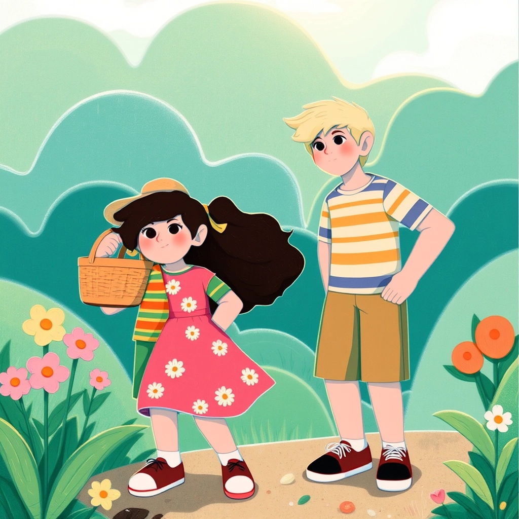 The children arrived, excited and ready to search. [Dylan](6GZRRKSY), the daring, adventurous boy, put on his straw hat and grabbed his basket. [Lila](J2FXFVT3), his imaginative little sister with a love for animals, wore a pink dress covered in daisies.