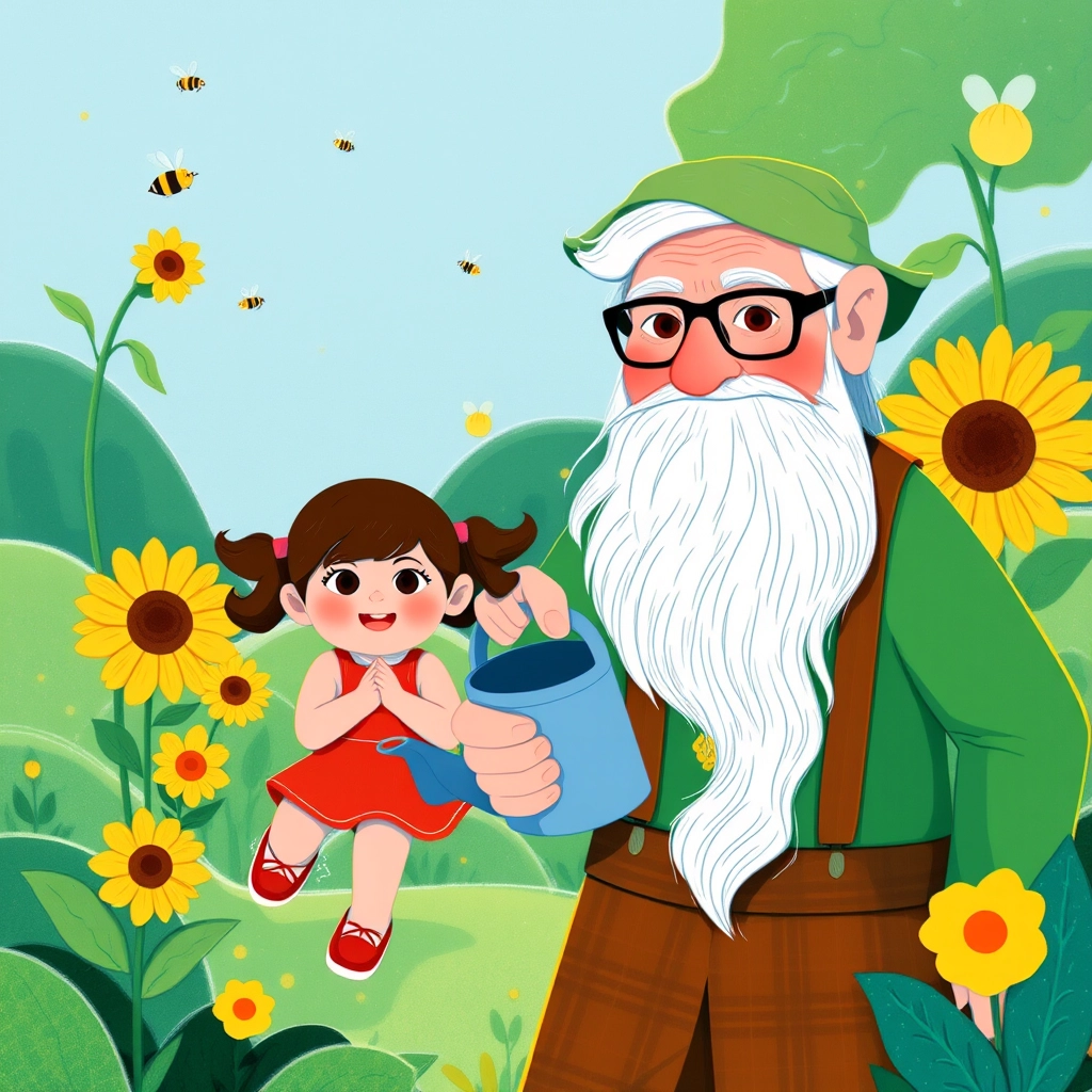 Once upon a time, in a cozy little village surrounded by rolling hills, [Emmy](SG9WJY5G) and her [Grandpa](WQMG6W4B) loved spending their afternoons exploring the garden.