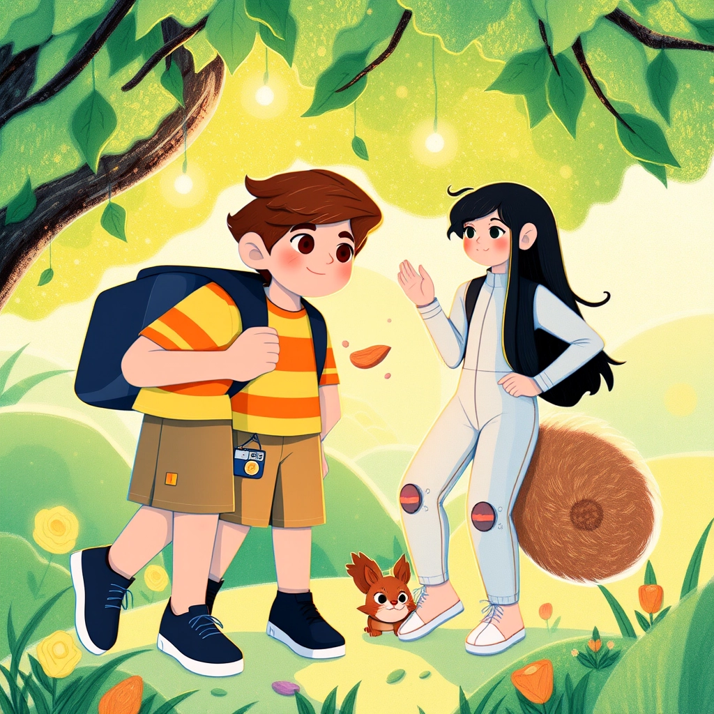 It was a sunny Saturday morning when [Greta](79L72B77) and [Ben](GH6JF3VF) decided to explore the forest near their neighborhood. [Ben](GH6JF3VF) packed his camera to capture any curious sights, and [Greta](79L72B77) zipped up her silver space-themed jumpsuit, excited for adventure.