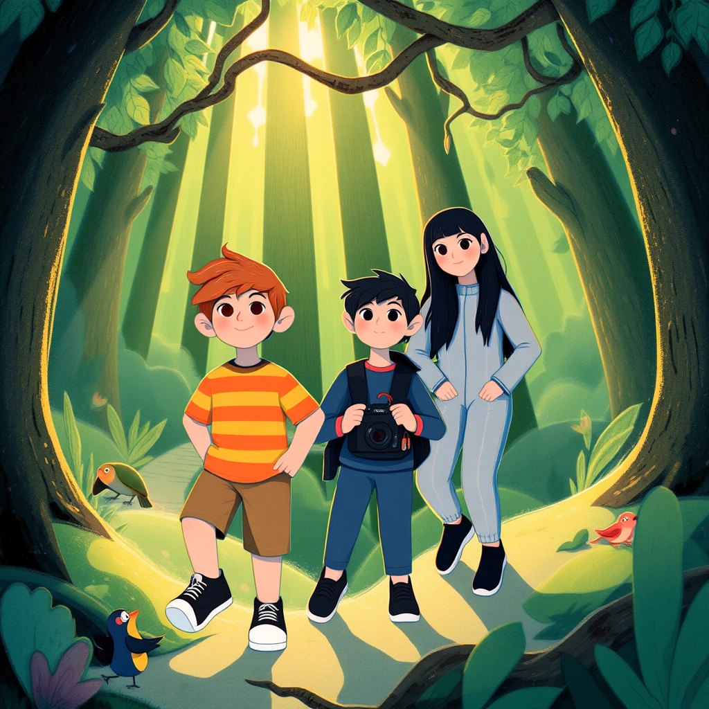 The forest greeted them with a gentle breeze and the sound of chirping birds. Sunlight streamed through the leaves, creating dancing patterns on the forest floor.