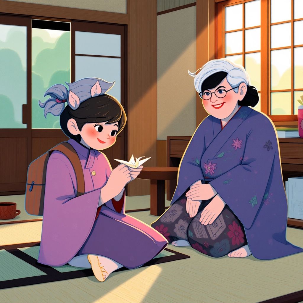 [Hana](RSJ3PTT9) took [Hadley](2FQRM7BW) to see her grandmother making origami cranes at home. With each fold, she told stories of Japanese traditions and wishes for happiness and peace.
