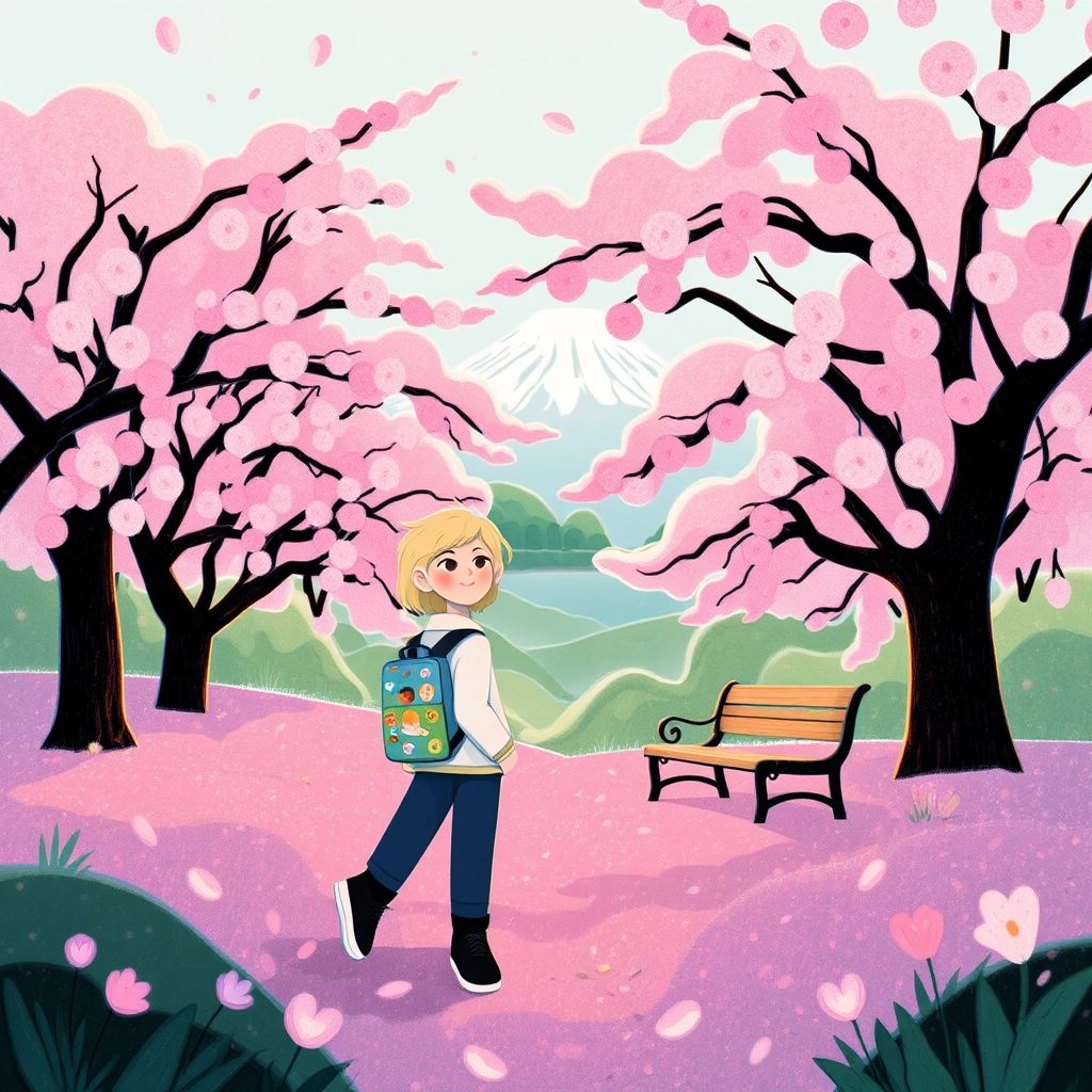 When she arrived in Japan, the first thing [Hadley](2FQRM7BW) saw was a forest of cherry blossom trees. Their pink petals swirled gently in the air, just like a magical snowfall.