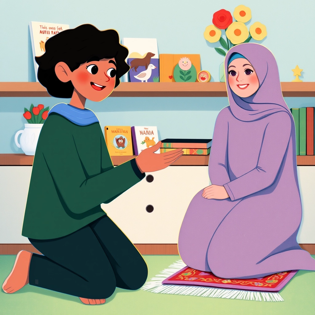 One day, [Yusuf](G95TMJSD)'s mother, [Mama Layla](NYQ3WJG2), gently held his hands and said, '[Yusuf](G95TMJSD), Allah gave us hands not to hurt, but to help and share. Kind hands make hearts happy!'