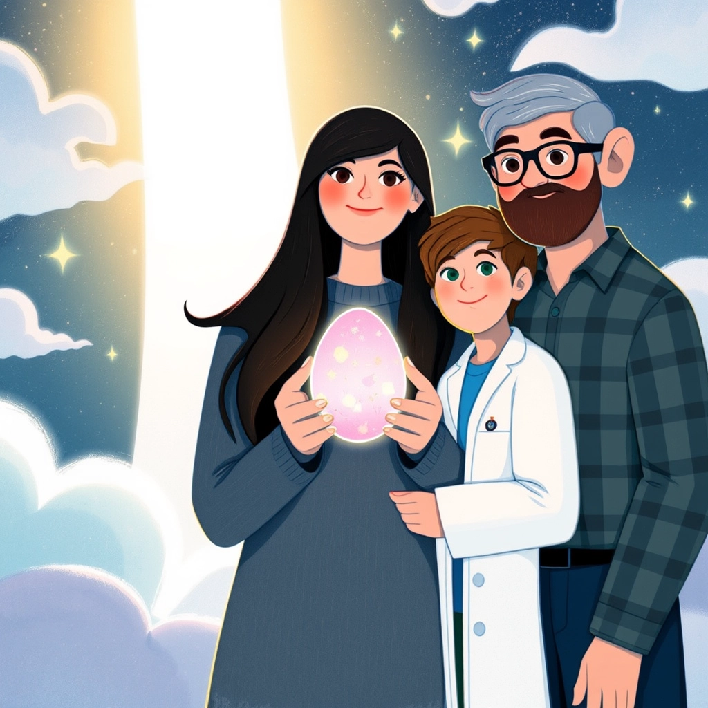 The doctor gave [Mumma](YJRXJRQC) exciting news! Another woman could help by giving her eggs. [Mumma](YJRXJRQC) and [Daddy](KLWRXT76) began looking for someone special who wanted to help them create something magical.