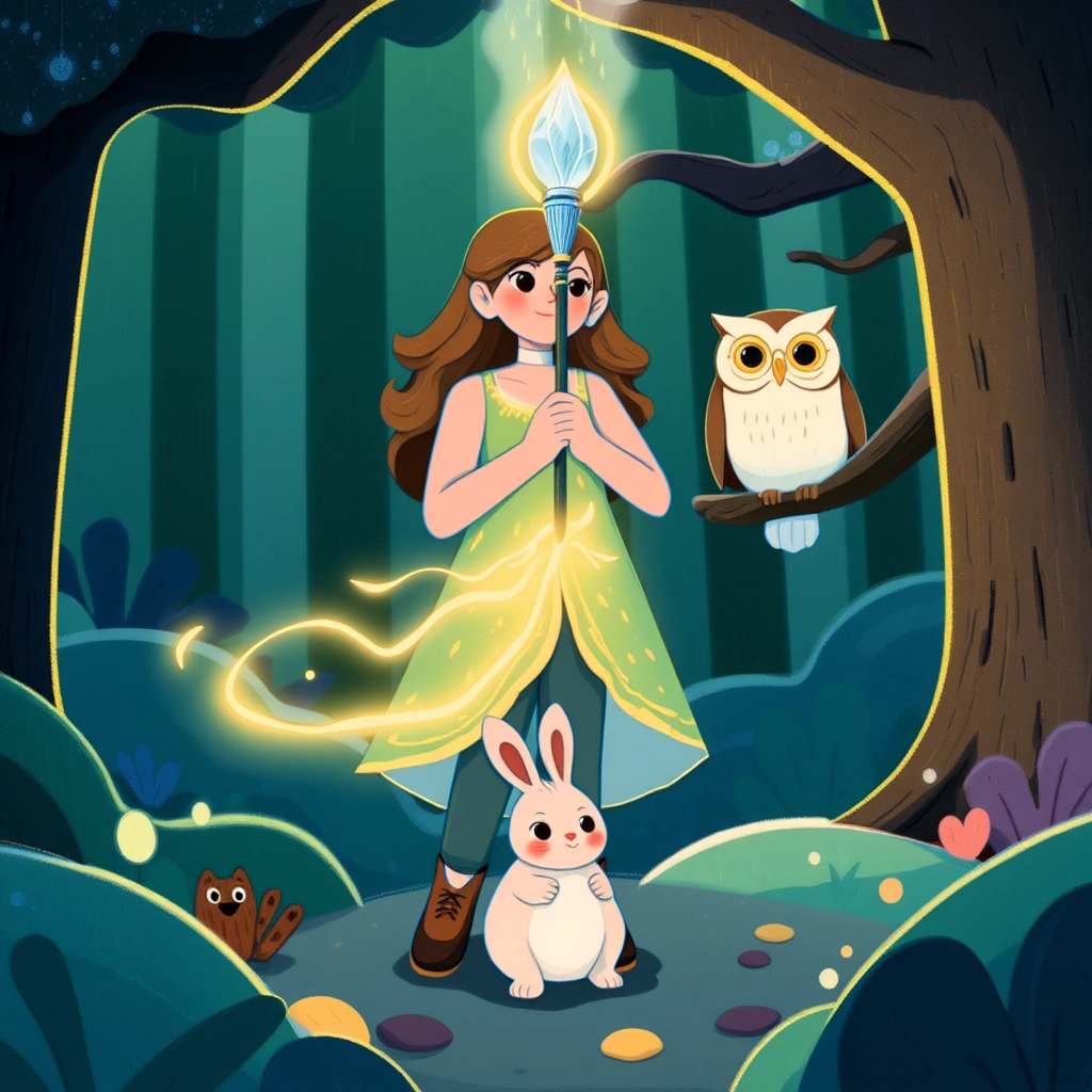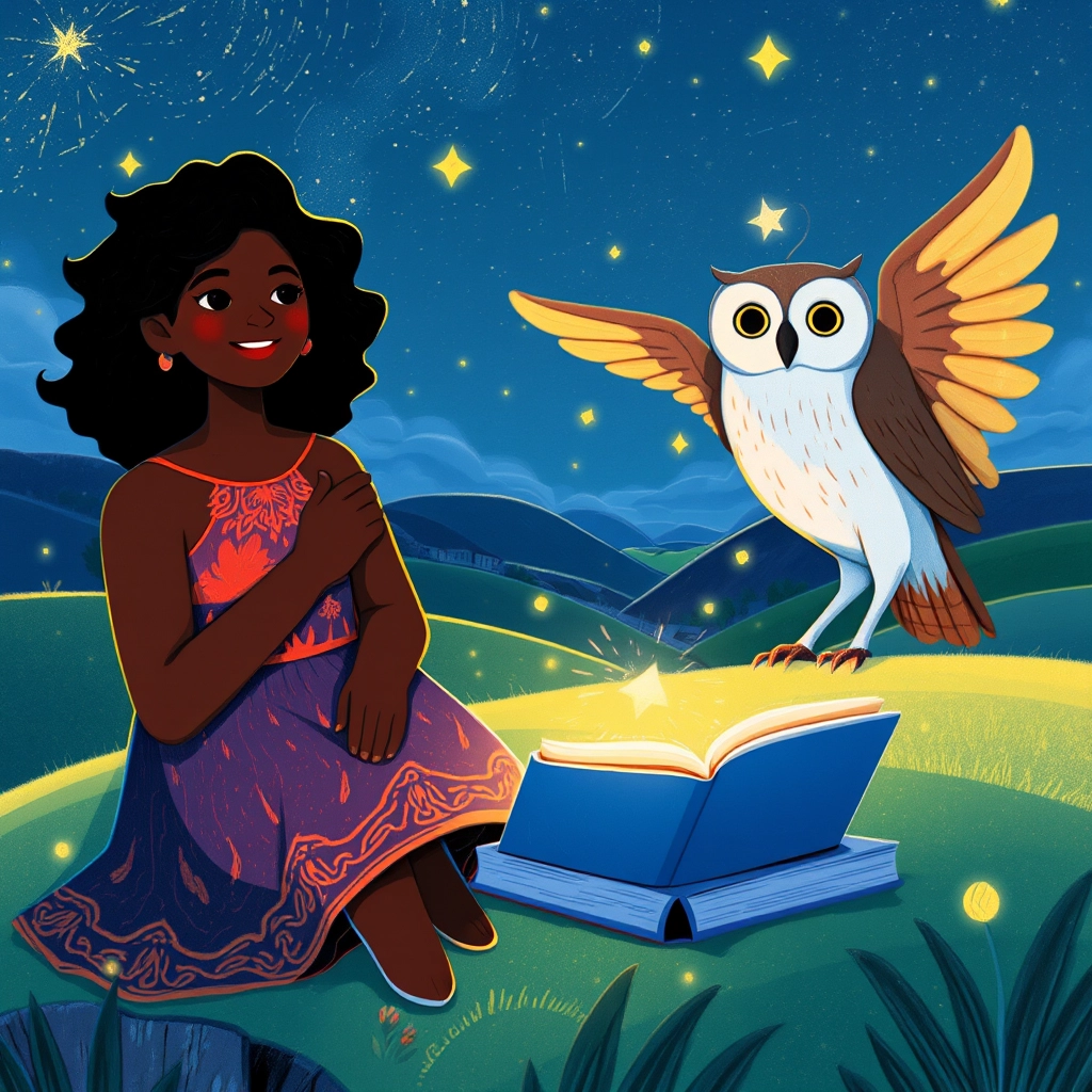 [Harmony Olukuewu](3VNJH7DC) always had a special gift—her glowing dark skin would light up whenever she hummed a tune. One night, while she was singing under the stars, a majestic owl named [Prof. Medica](JPGSD3ZM) appeared, its feathers shimmering with golden streaks. 'Harmony,' the owl hooted warmly, 'your gift is extraordinary! You’re destined to heal both bodies and hearts.' Harmony's eyes widened with excitement as [Prof. Medica](JPGSD3ZM) handed her an ancient glowing book and urged her to begin her magical journey.