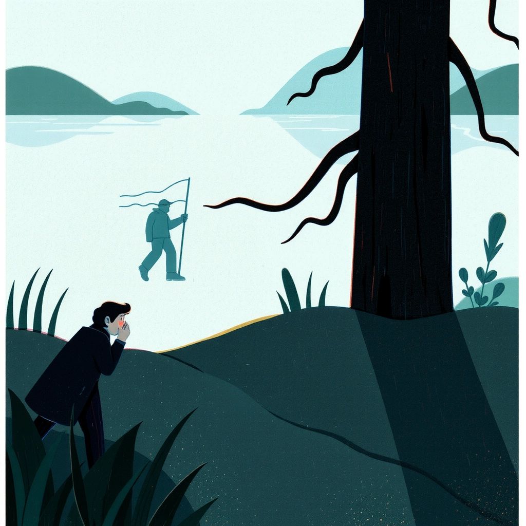 Ripples danced at the water's edge, as Henry peered from the reedy hedge. He saw a shadow, large and deep, and heard a voice begin to weep.