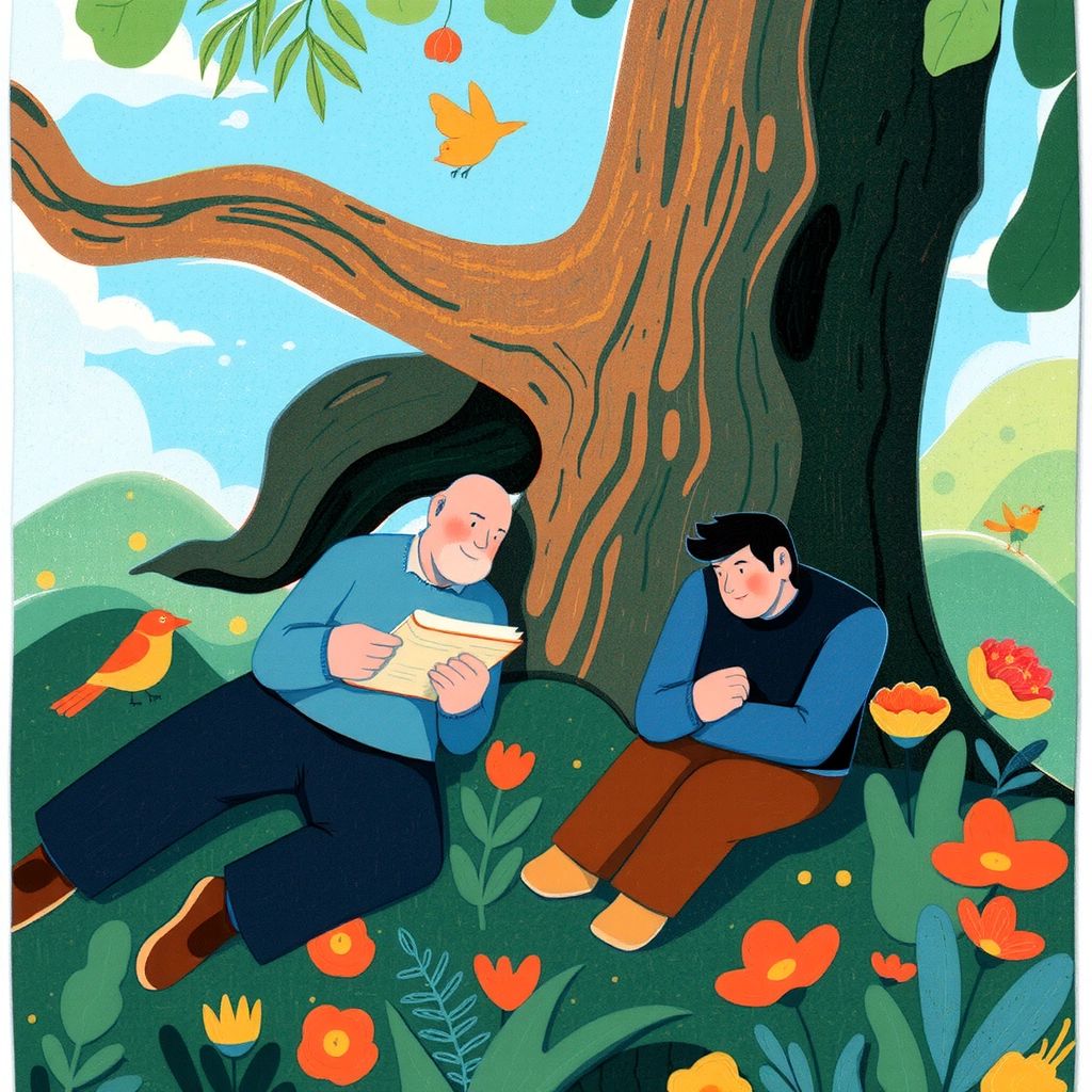 They shared many tales of lore and fun, laughed at stories under the sun. From taniwhā myths to doggie dreams, their friendship wove like babbling streams.
