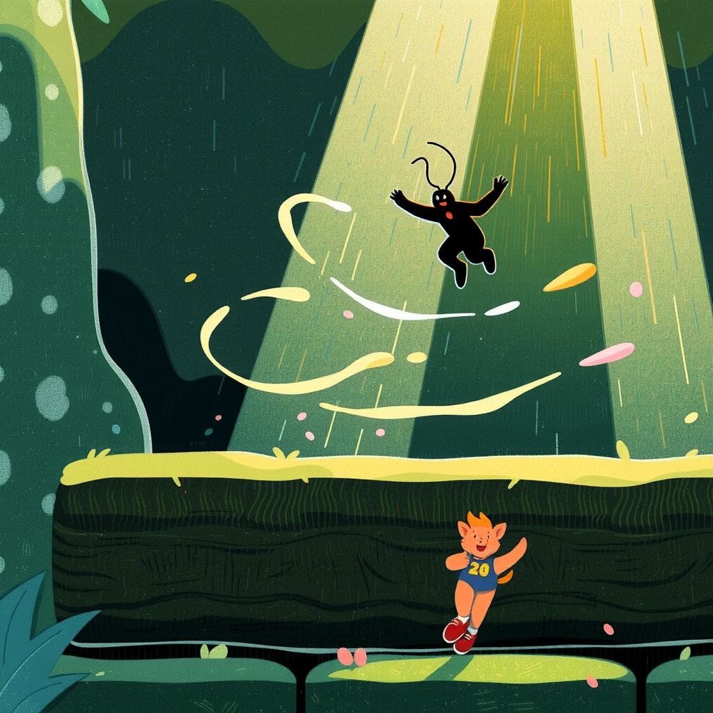Over the hedges, he's a tan blur, dodging past bush and whirring fur. His twinkling eyes catch the bright sun rays, leading him onward when the world’s a maze.
