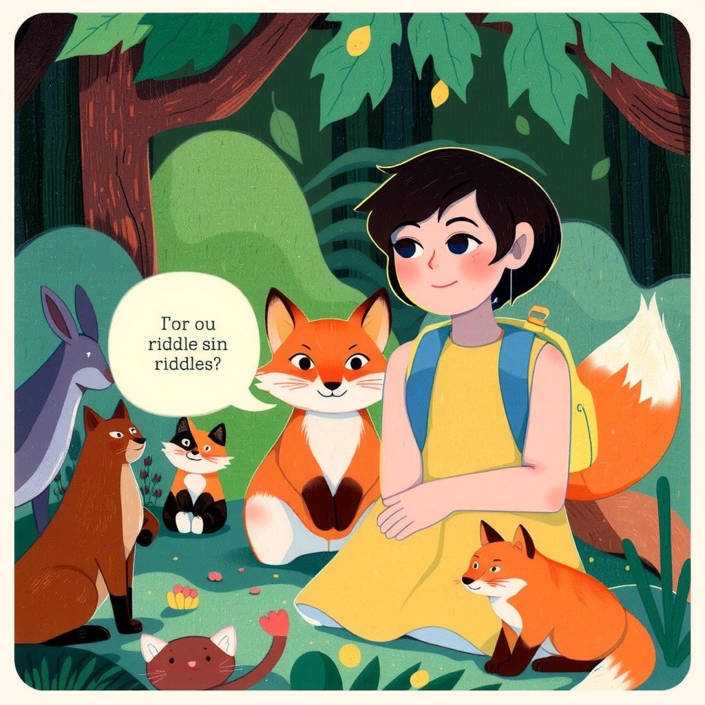 They wandered into a meadow where they encountered [Lia](NDFCL4GQ), a playful fox with a bushy tail, known for her riddles and laughter.