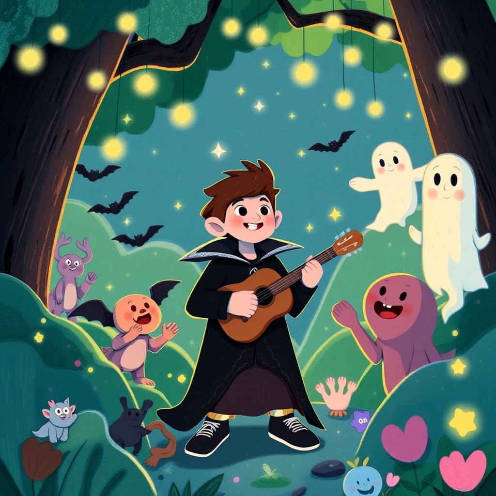 And so, [Hobart](9QWXXFTB)'s legend grew. The little vampire boy with a love for music and adventure became the heart of the forest's magical melodies, promising excitement under every full moon.