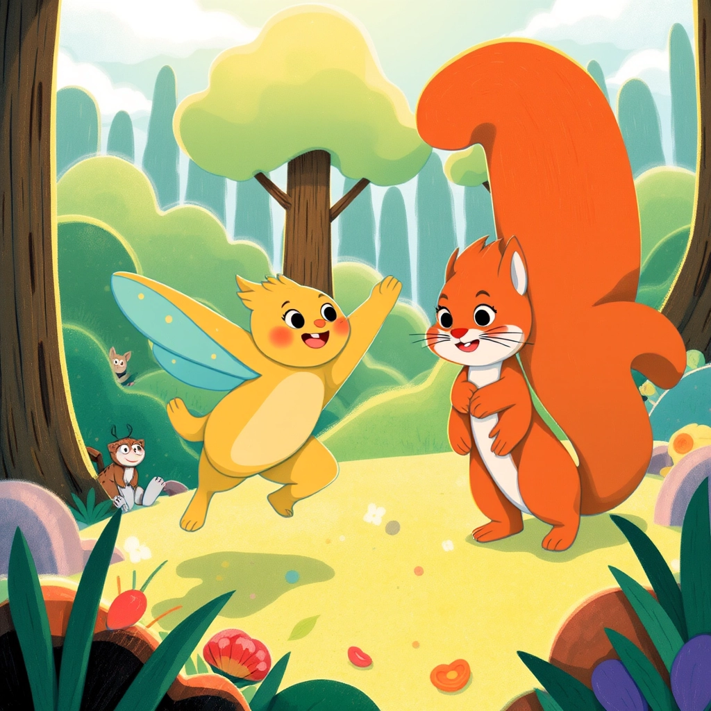 As [Hoppity](2TNGP6RM) hopped down the tree, she met her best friend, [Twinkle](LZMR7GNP) the squirrel. [Twinkle](LZMR7GNP) had bushy reddish fur with a streak of white on her tail, and her eyes sparkled with mischief.