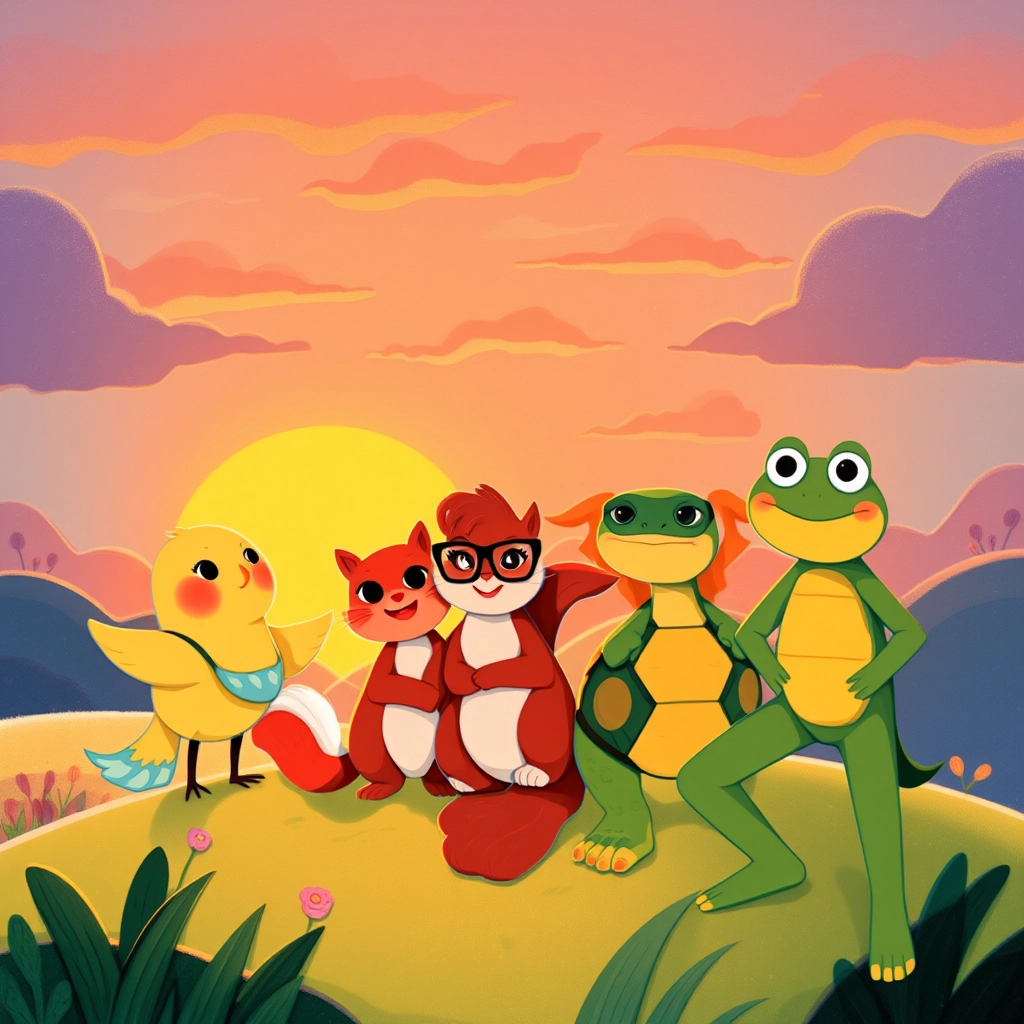 As the sun began to set, [Hoppity](2TNGP6RM) looked around at her friends and smiled. She realized that with a little courage, the world was full of wonderful surprises and new friends.