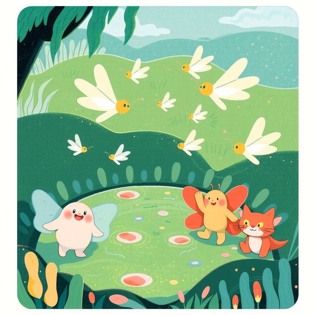 As they ventured deeper, the path led them to the edge of the Enchanted Pond where shimmerflies danced above the water. Their reflections flickered like stars.