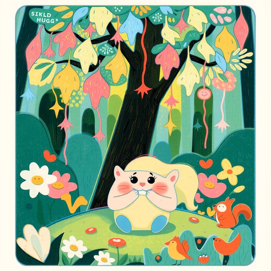Once upon a time in the magical Whispering Woods, a fluffy creature named [Hugg](M45R3ZJ5) lived under the shade of the Twinkling Tree. [Hugg](M45R3ZJ5) had a special gift: the power of an embrace that could make anyone smile!
