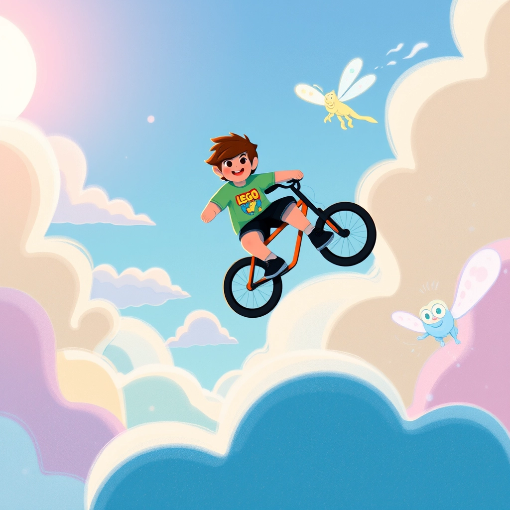 [Nimbus](X2V6MKHD) and [Isaac](PJV9Z9V6) played an exciting game of tag, leaping between clouds that smelled like cotton candy. [Isaac](PJV9Z9V6) even learned how to jump his bike between the clouds, feeling like a superhero!