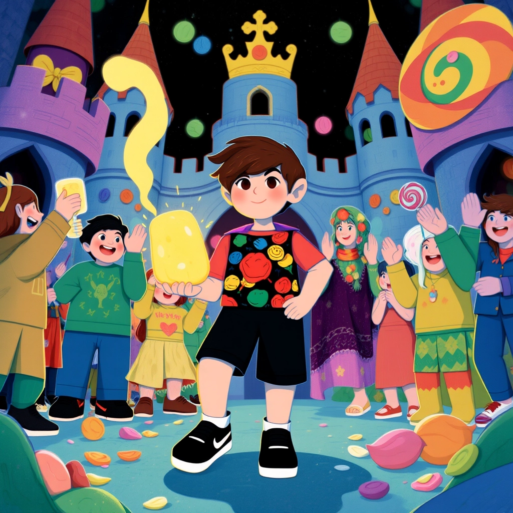 [Isaac](PJV9Z9V6) and his new candy friends—Gummy Bears, Chocolate Chip Cookies, and the Lollipop King—chased the jellybean thief across marshmallow lakes and gummy forests. Finally, they caught [Nutmeg](RJX96RNB), a tiny candy thief hamster who was hiding in a chocolate burrow.