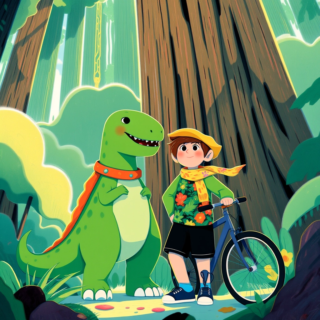 [Isaac](PJV9Z9V6) found himself in Dinosaur Jungle, where trees were as tall as skyscrapers and leaves bigger than he was. Suddenly, a T-Rex emerged! But it wasn’t a scary T-Rex—this one was wearing a sunny yellow hat and a flowered scarf. 'Hello, I’m [Tina](D4ZJQT4M),' she said with a friendly roar.