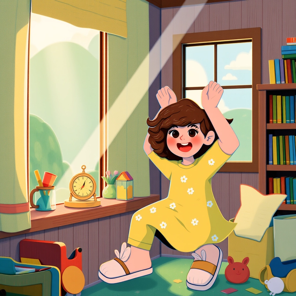 [Isabella](VK4GHXCL) woke up on a sunny morning, her pigtails sticking out like little curly springs. She stumbled upon a strange, glowing compass left on her windowsill. It hummed softly and sparkled like magic.