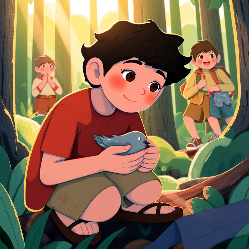 He decided to bring the injured bird back to his father, even though he feared his father would be angry. As he walked back through the forest, guilt weighed heavily on his shoulders.