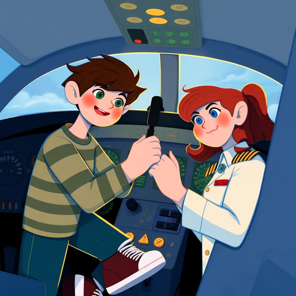 [Jack](TH9RV65Z) got to steer the plane! 'You’re a natural,' said [Captain Amelia](GYZ2L64Z). But suddenly, the radio crackled: 'We need help with a surprise delivery!'