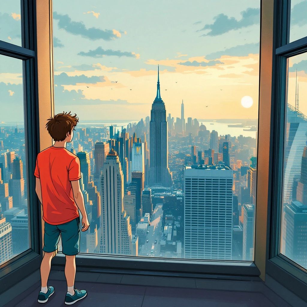 As they ventured towards the Empire State Building, [Emory](LKHLQJZS) was awestruck by the city's skyline. From the top, they had a panoramic view of New York's sprawling urban landscape, with tiny cars and people moving below.