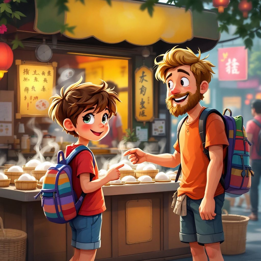 A stall with steam, and smells divine, ‘[Jeremy](9Z4YBMB2), look! It’s bao bun time!’