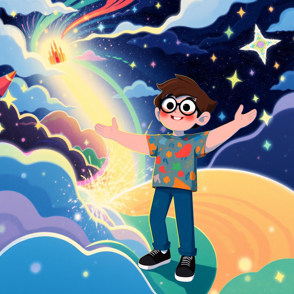 When [Jeremy](J4MGFTDP) slid his feet into the shoes, the world around him swirled and twinkled. Suddenly, he was no longer in his front yard but inside a magical daydream!