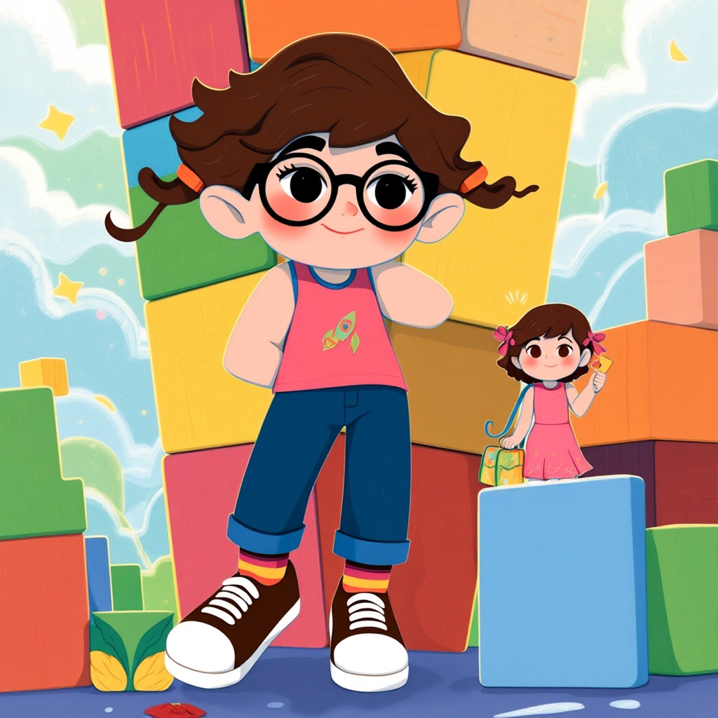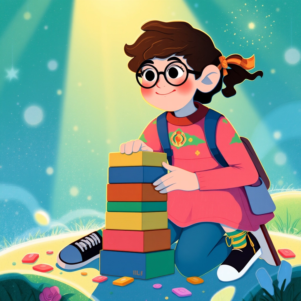 [Jeremy](J4MGFTDP) found himself in [Amelia](9NCKD9FR)’s daydream—a little girl from his school. She was building a tall tower of blocks but kept getting frustrated when it tumbled down.