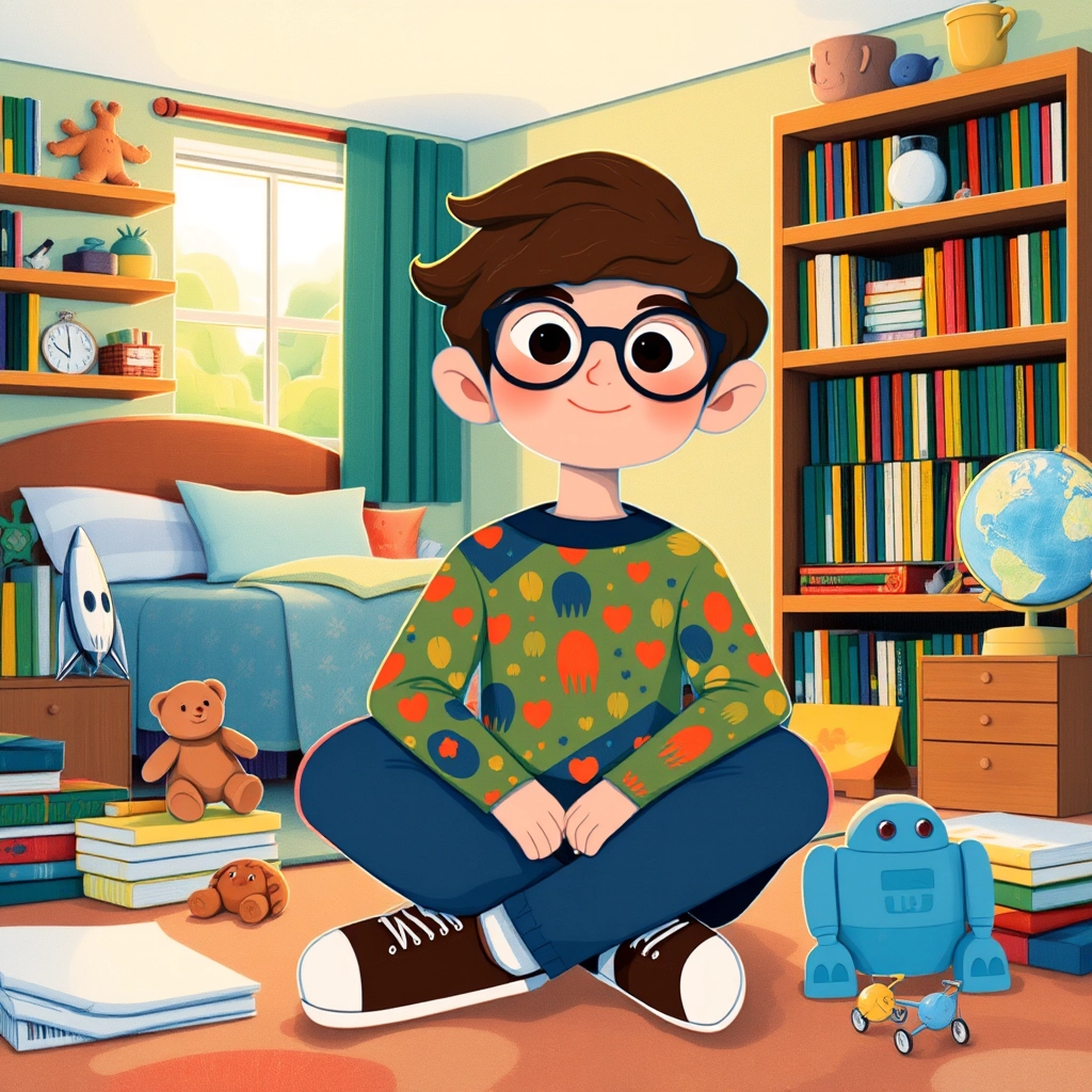 [Jeremy](J4MGFTDP) was a curious little boy with big round glasses. He loved to tinker with toys and read picture books about science and adventures, but he often struggled to understand how others felt.