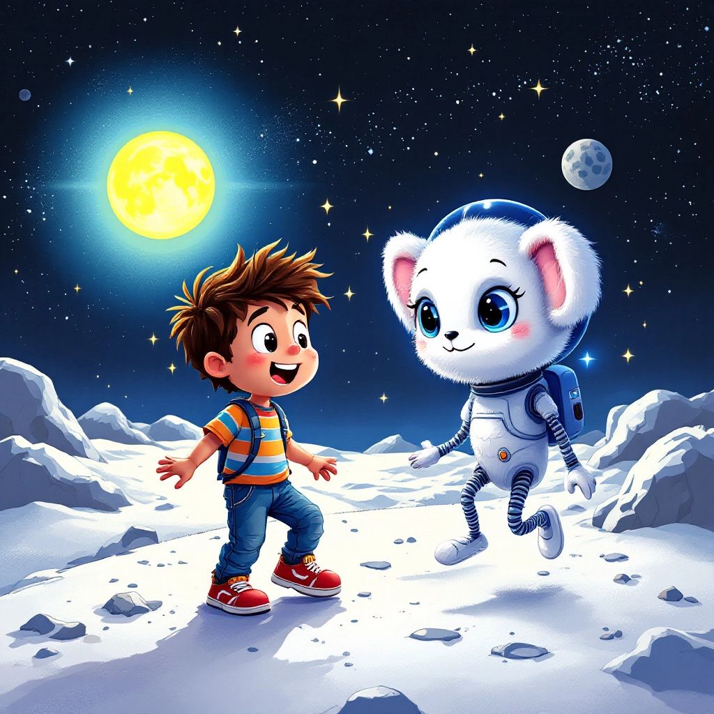 Luna invited [Jimmy](QK7PD5K3) to explore. They hopped across craters, discovered shiny Moon rocks, and even found a sparkling secret cave filled with glowing crystals. 'The Moon is full of surprises!' Luna said with a giggle.