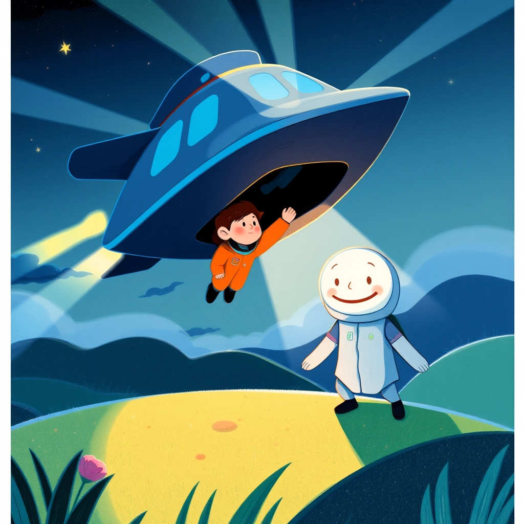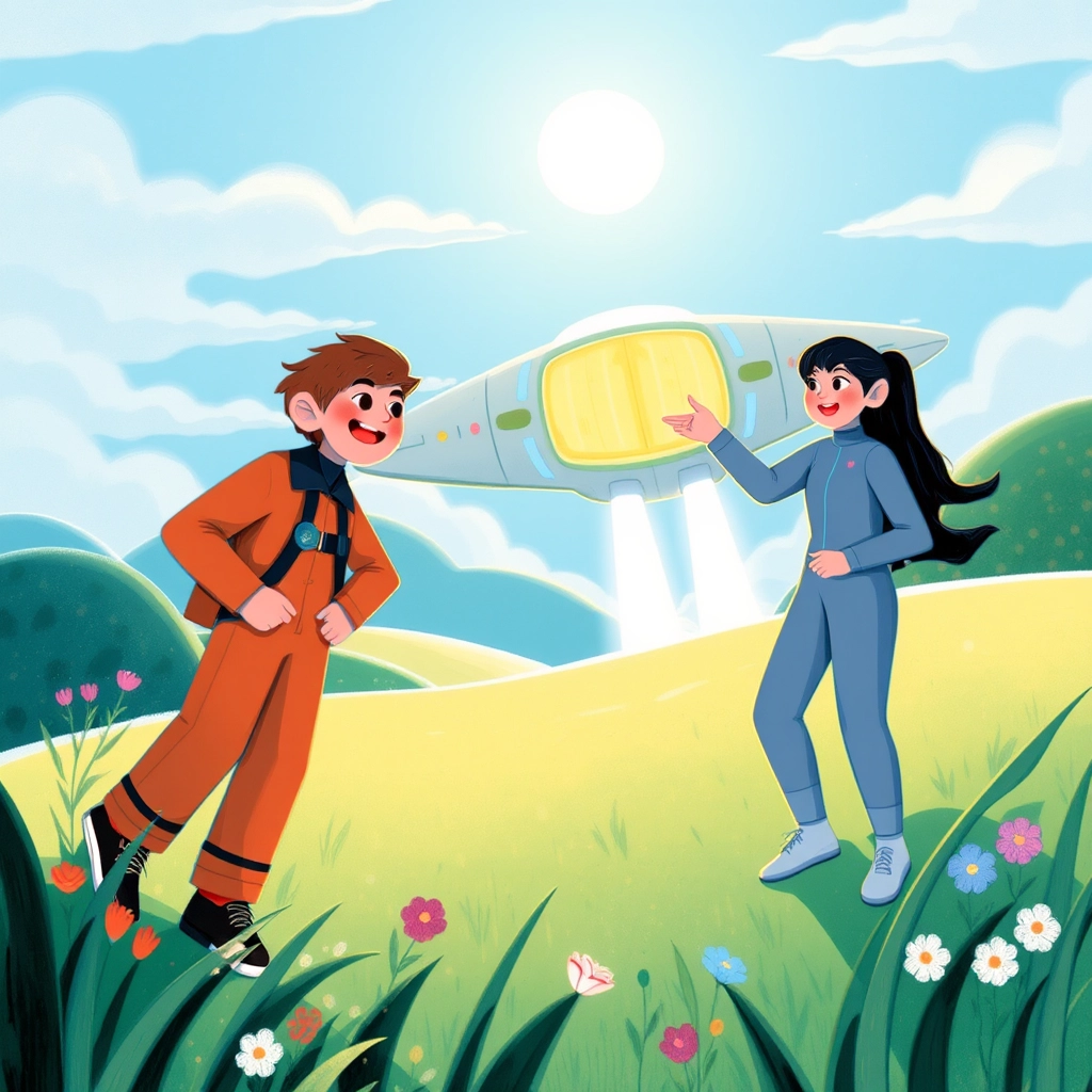 One day, [Joe](SG7M9Y6Z) and [Greta](79L72B77) found a shiny, silver button buried in a field. When they pressed it, a spaceship appeared before them, shimmering and ready for an adventure!