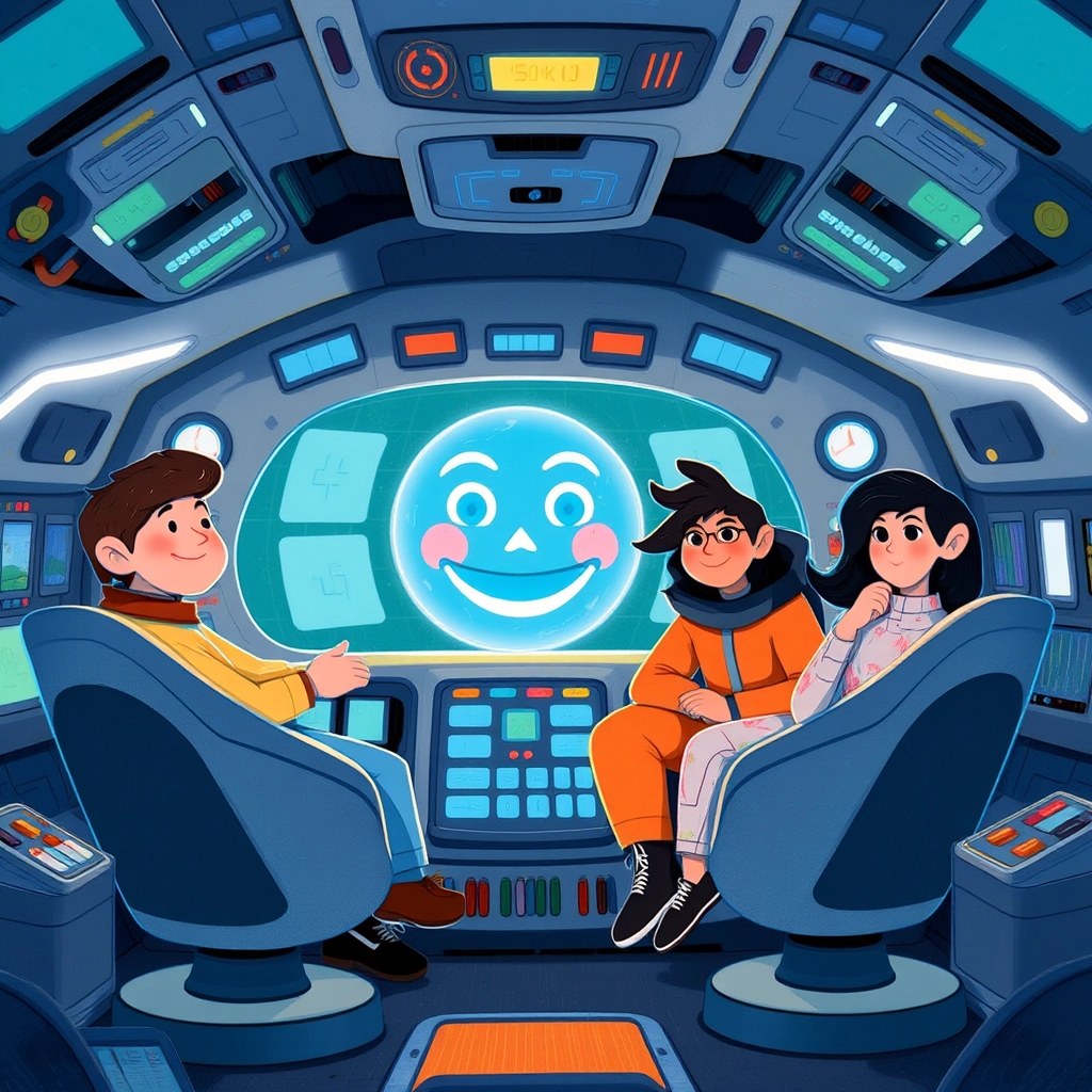 As they stepped inside, the spaceship greeted them with a friendly voice and introduced itself as [Astro-10](25JX2QZR), their guide for the journey of a lifetime.