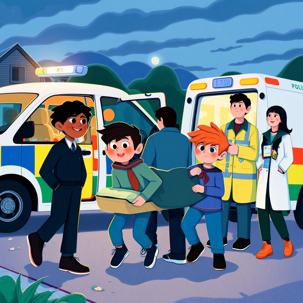 Thanks to [John](LFKTS43M)'s detailed description, the police found the van and rescued [James](PNZQYD29). Unfortunately, [James](PNZQYD29) was unconscious from a sleeping pill hidden in the candy, but doctors at the hospital made sure he was safe.