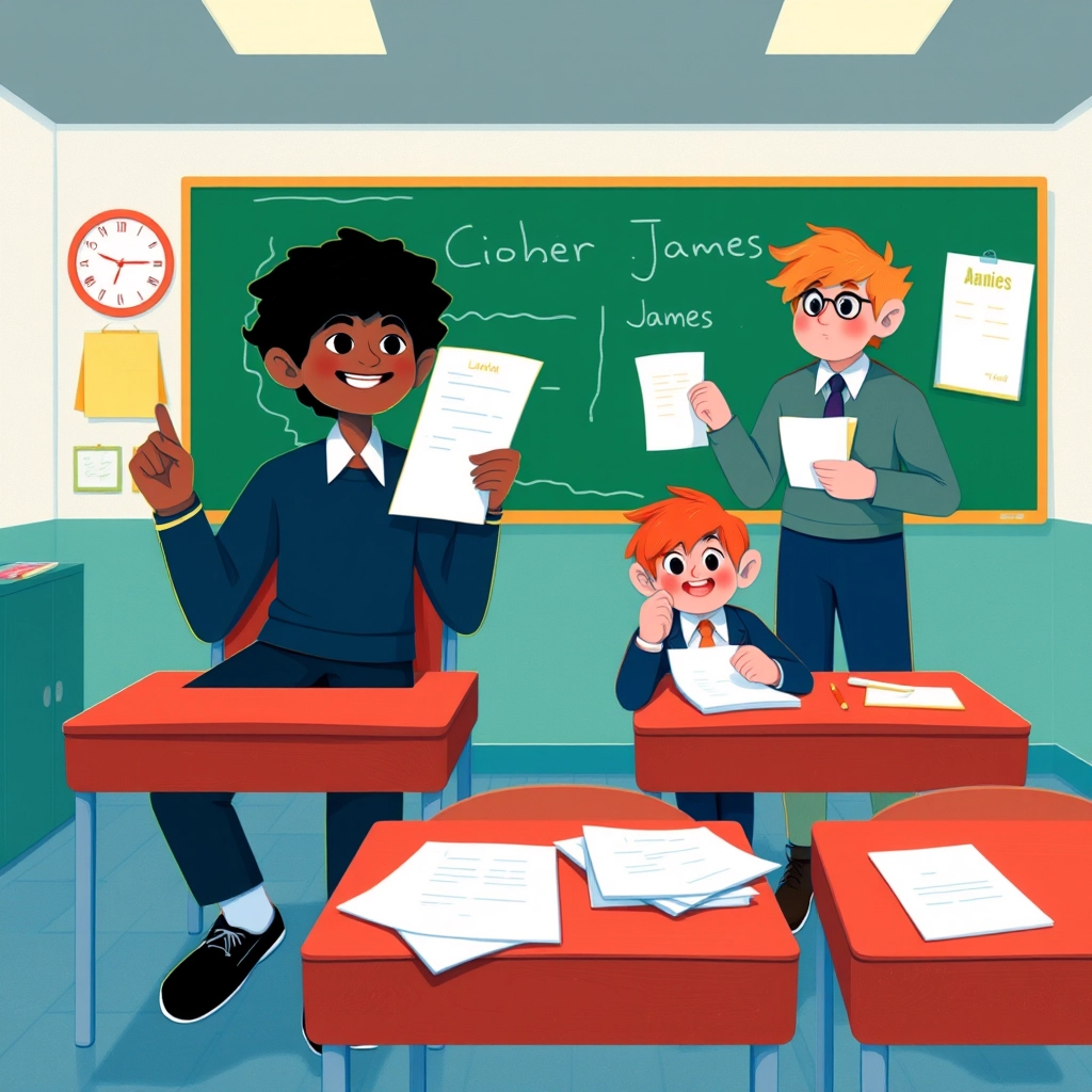 [John](LFKTS43M) always listened to his parents' advice, including doing his homework every evening. On the other hand, [James](PNZQYD29) often left his homework unfinished. One day at school, [James](PNZQYD29) got punished for not completing his homework, while [John](LFKTS43M) was praised for his diligence.