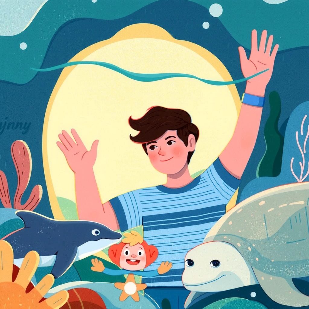 [Jonny](YK37KXKG) waved goodbye to his new friends, with a promise to return to the magical underwater kingdom soon.