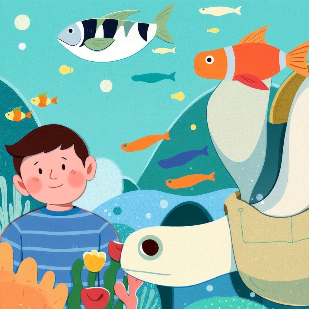[Finny](SFDYQ9L2) led [Jonny](YK37KXKG) to meet the wise old turtle, [Tilly](BW2BXVC5), who was slow but very kind.