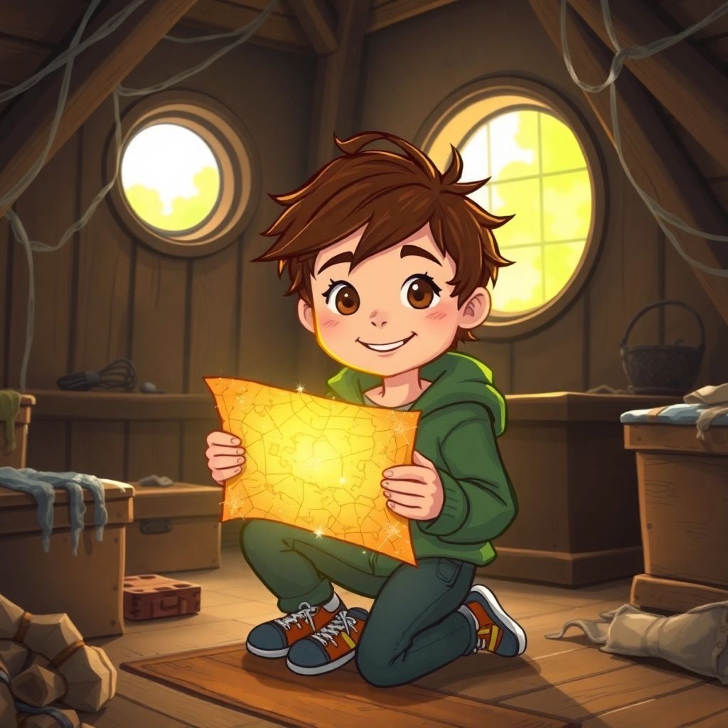 One sunny afternoon, [Joseph](G3VBBFFZ), a boy with an adventurous spirit and a knack for discovery, stumbled across an ancient map while exploring his attic. The map showed a glowing path to a secret land beyond the forest near his home.