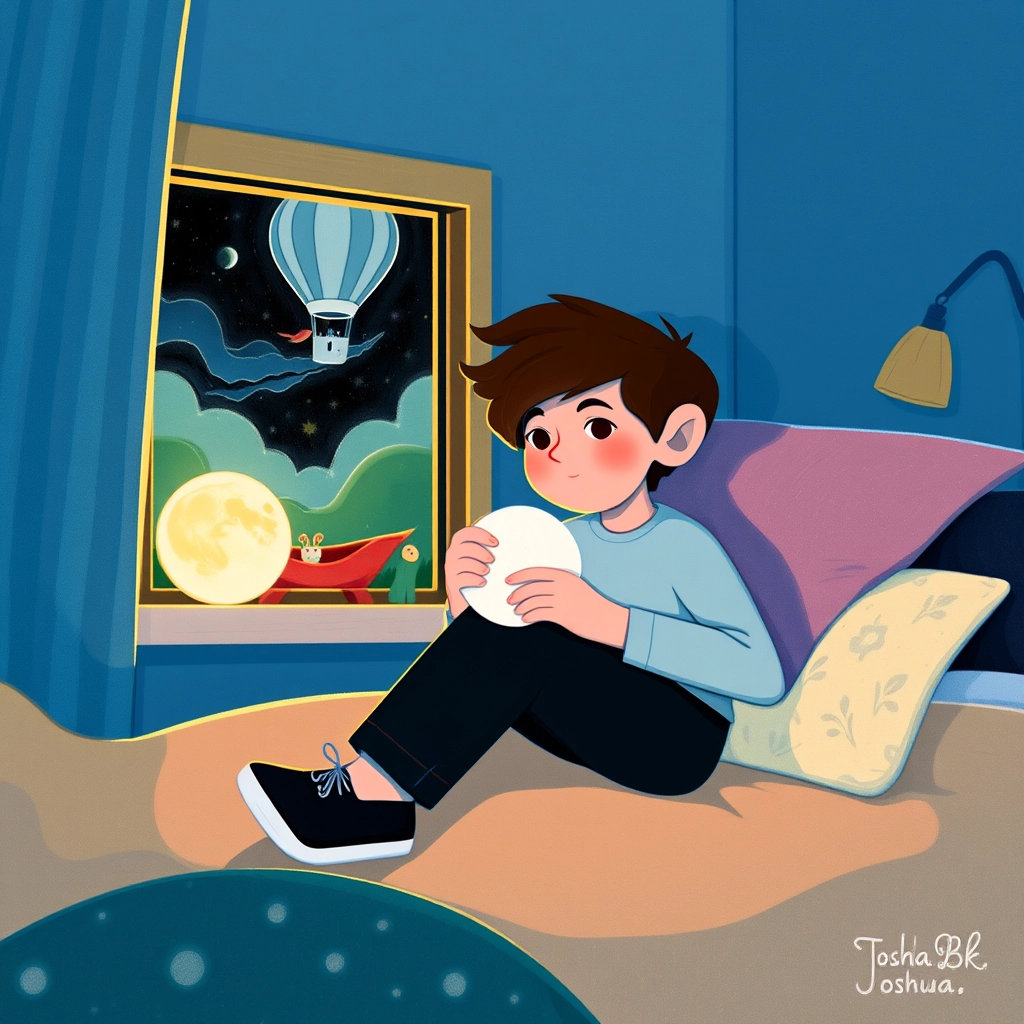 One quiet night, little [Joshua](CYF7L3PB) was looking out his window when he saw a shiny silver balloon floating outside. It had a little note tied to it that read, 'Dear [Joshua](CYF7L3PB), would you like to visit the moon?'