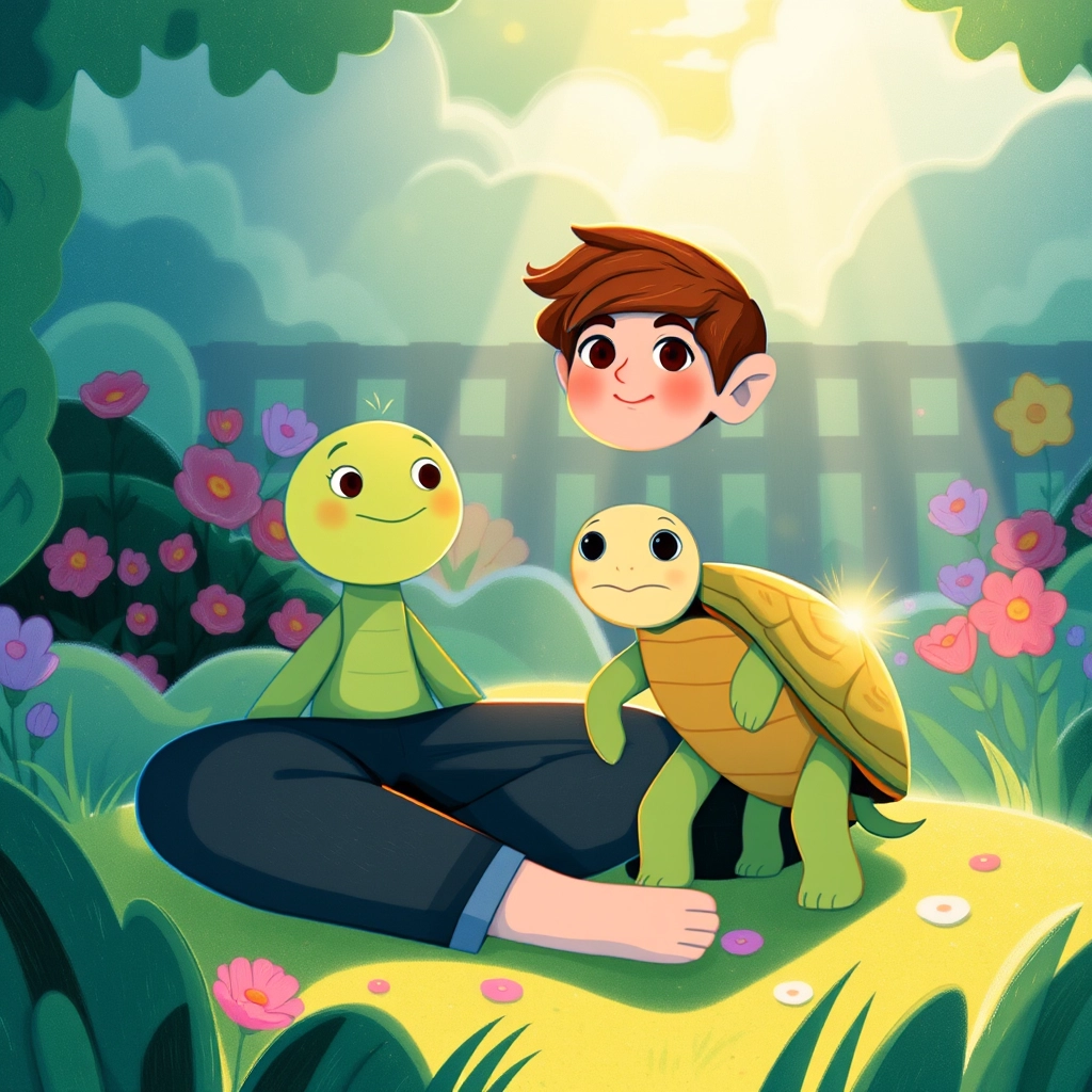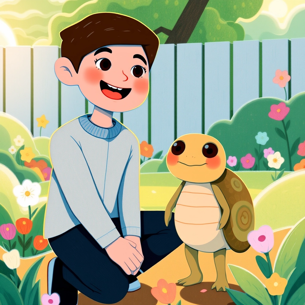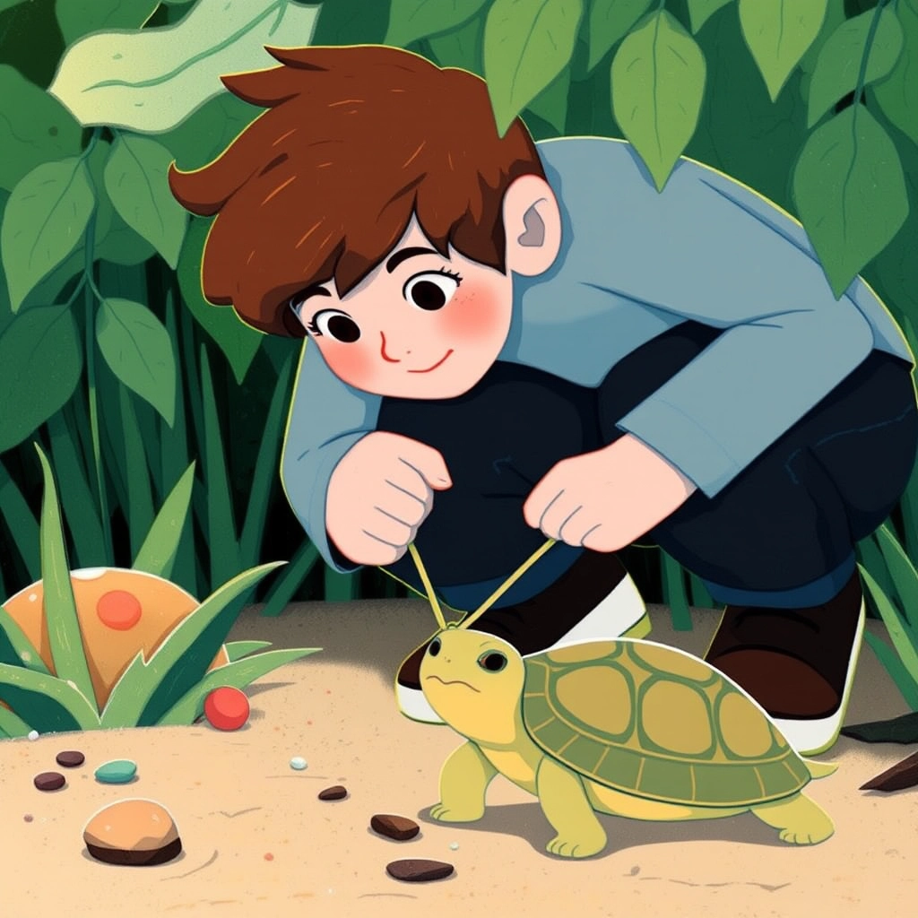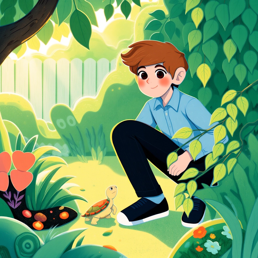 Once upon a time, there was a curious little boy named [Joshua](CYF7L3PB) who loved exploring. One sunny morning, he discovered a little turtle stuck in a bush in the garden behind his house.