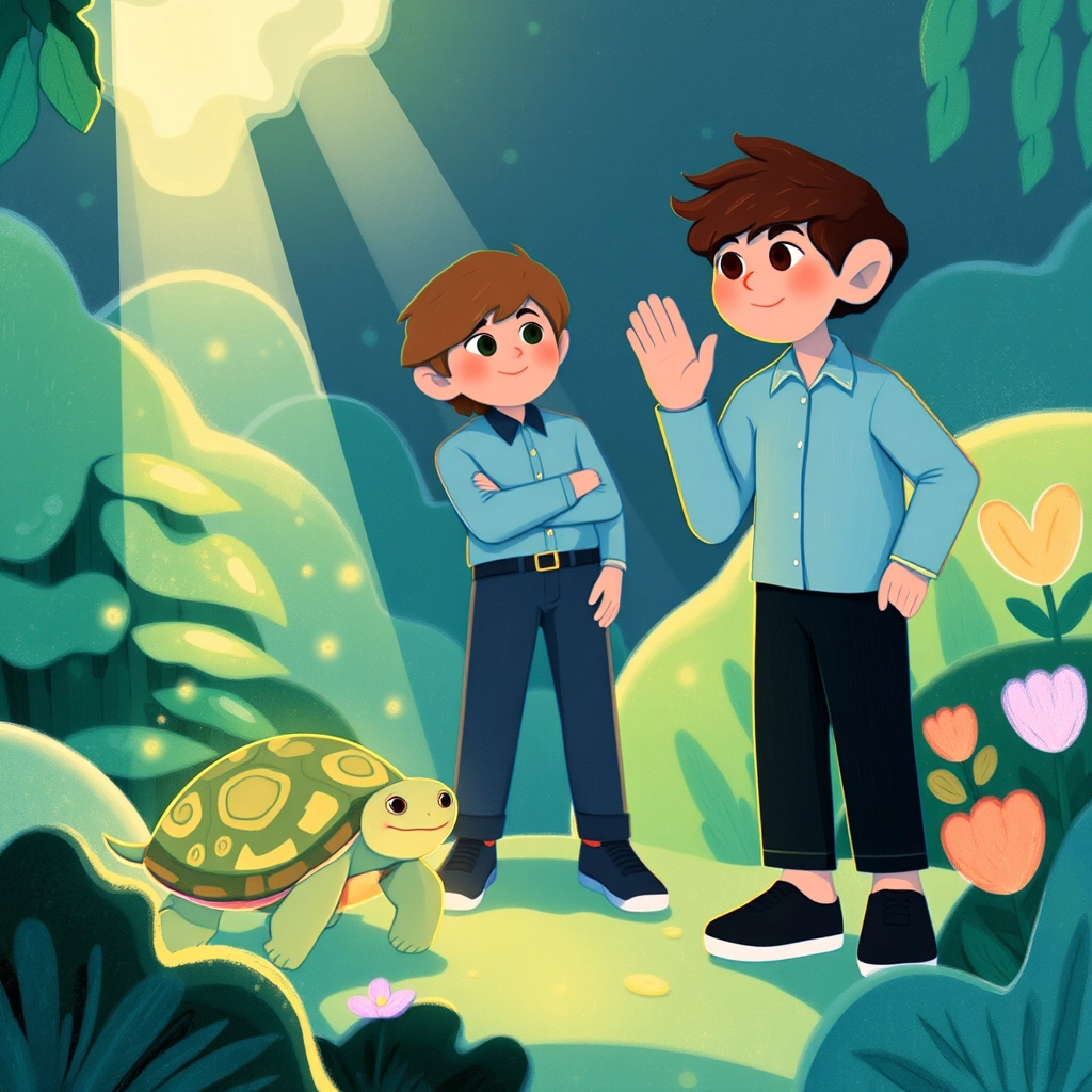 [Toby](TMXZRGLQ) said, 'Kindness always brings magic. Keep being kind!' With a wink, the magical turtle disappeared into the bushes.