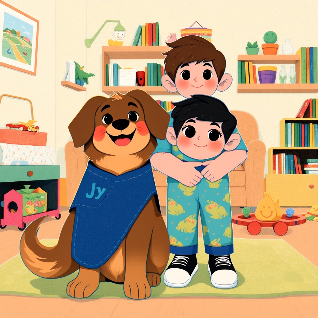 That evening, as the sun set and [Aryash](Y29KFJTX) got ready for bed, [Joy](LGKKDMY5) snuggled up beside him. [Joy](LGKKDMY5) knew he wasn’t just a dog. He was [Aryash](Y29KFJTX)’s eyes, ears, best friend, and a little hero every day.