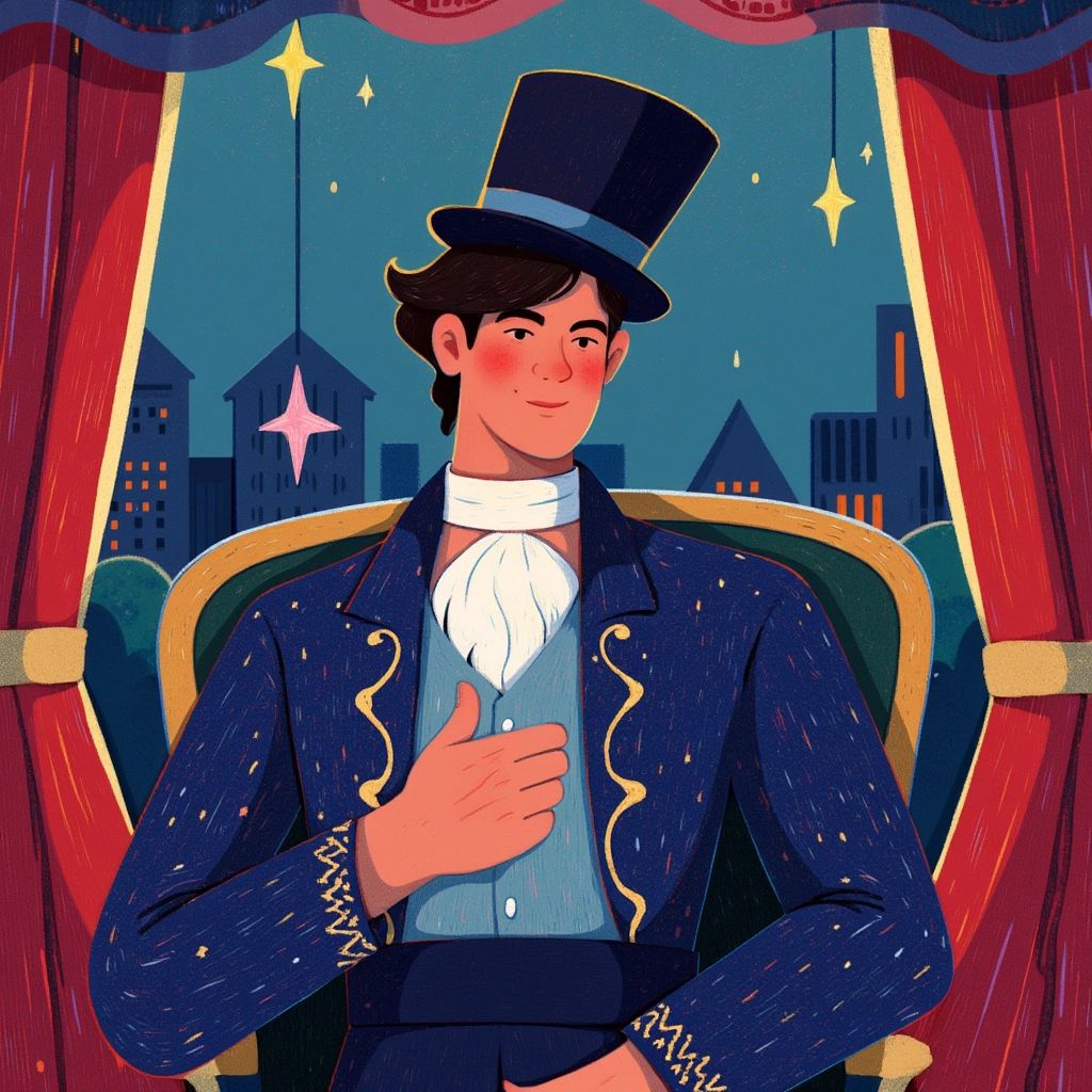 The [Ringmaster](JMHRZ944), an elegant figure clad in a midnight-blue coat adorned with stars, welcomed [Justin](2BH3PG3L) personally. "Tonight," he declared, "We shall unveil the impossible!"