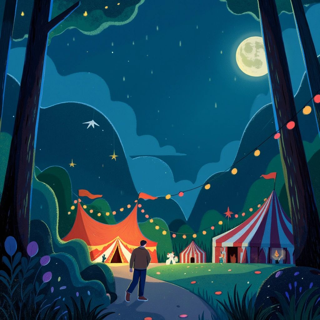 As [Justin](2BH3PG3L) left the circus, he felt a sense of wonder and joy he'd never known. The night air was crisp, and the stars above seemed to twinkle just for him.
