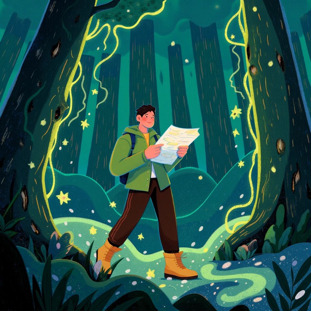 Intrigued by the legend, [Justin](2BH3PG3L) couldn't resist the challenge. He took a well-deserved break from selling cars and embarked on a quest into the Mystic Woods, a forest full of secrets and enchantment.