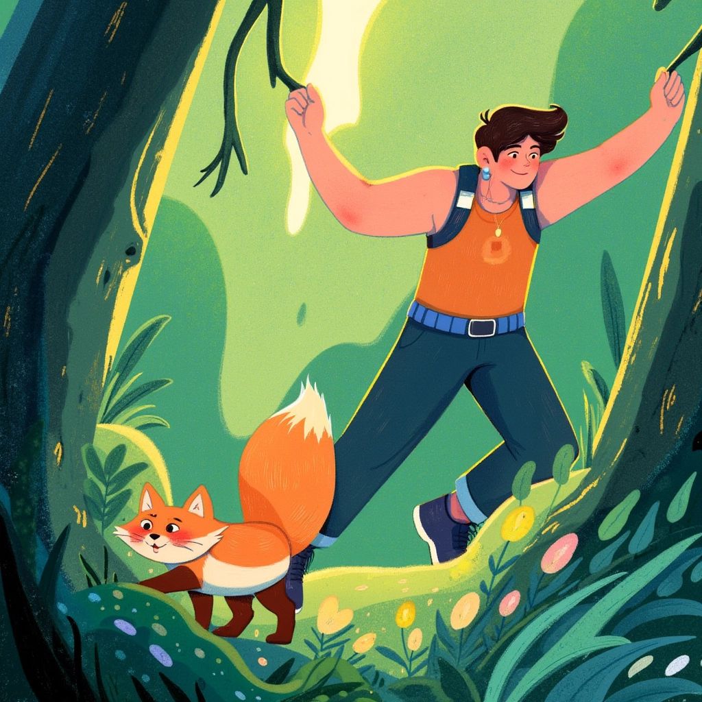 Deeper into the woods, [Justin](2BH3PG3L) followed the trail of light. He encountered a playful fox with a bushy tail tipped with gold. 'I'll help you through the briars,' said the fox, darting ahead to clear the path.