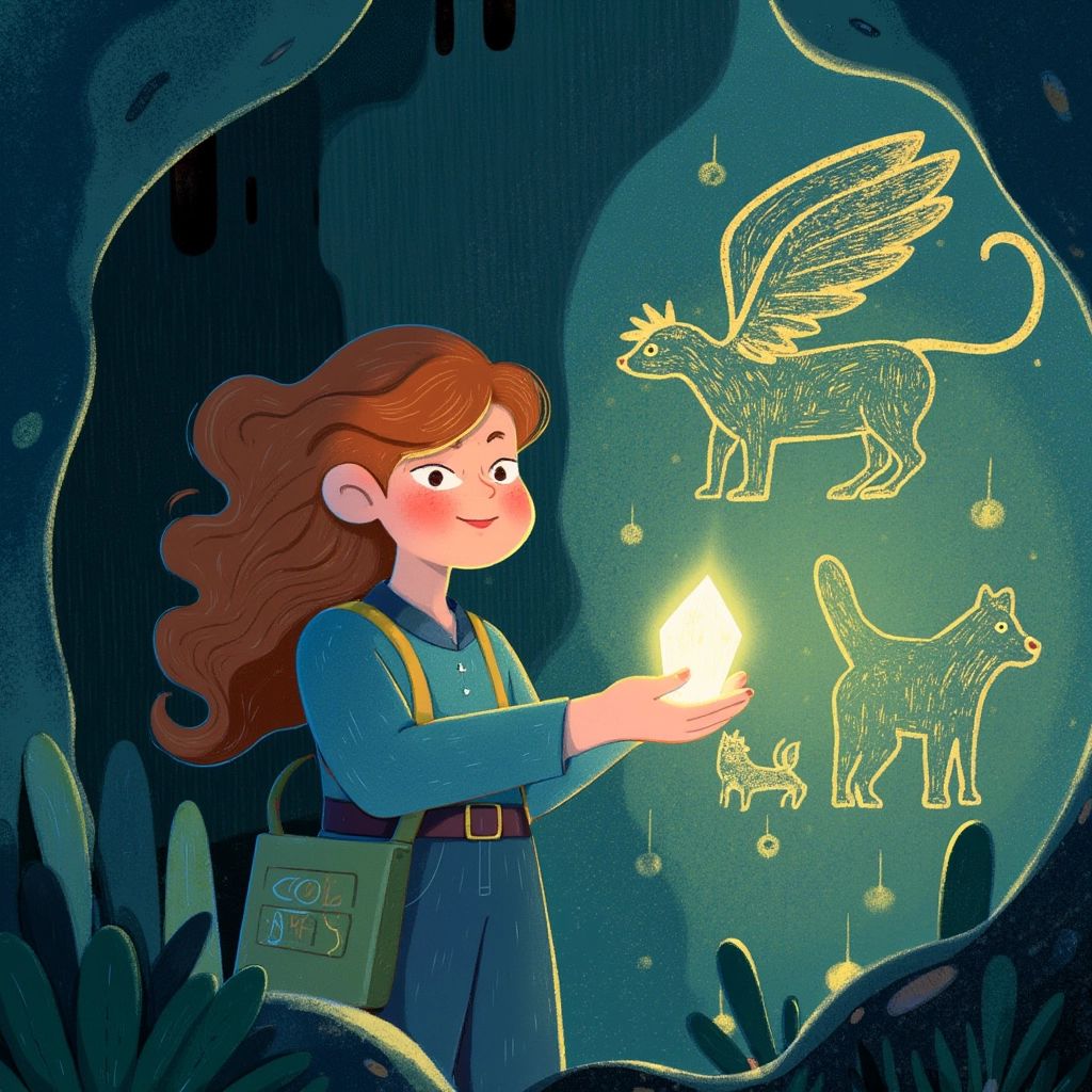 Intrigued, [Kathleen](93SQTB5Z) followed the drawings deeper into the cave, where she discovered a hidden chamber filled with even more brilliant crystals and a mysterious stone pedestal.