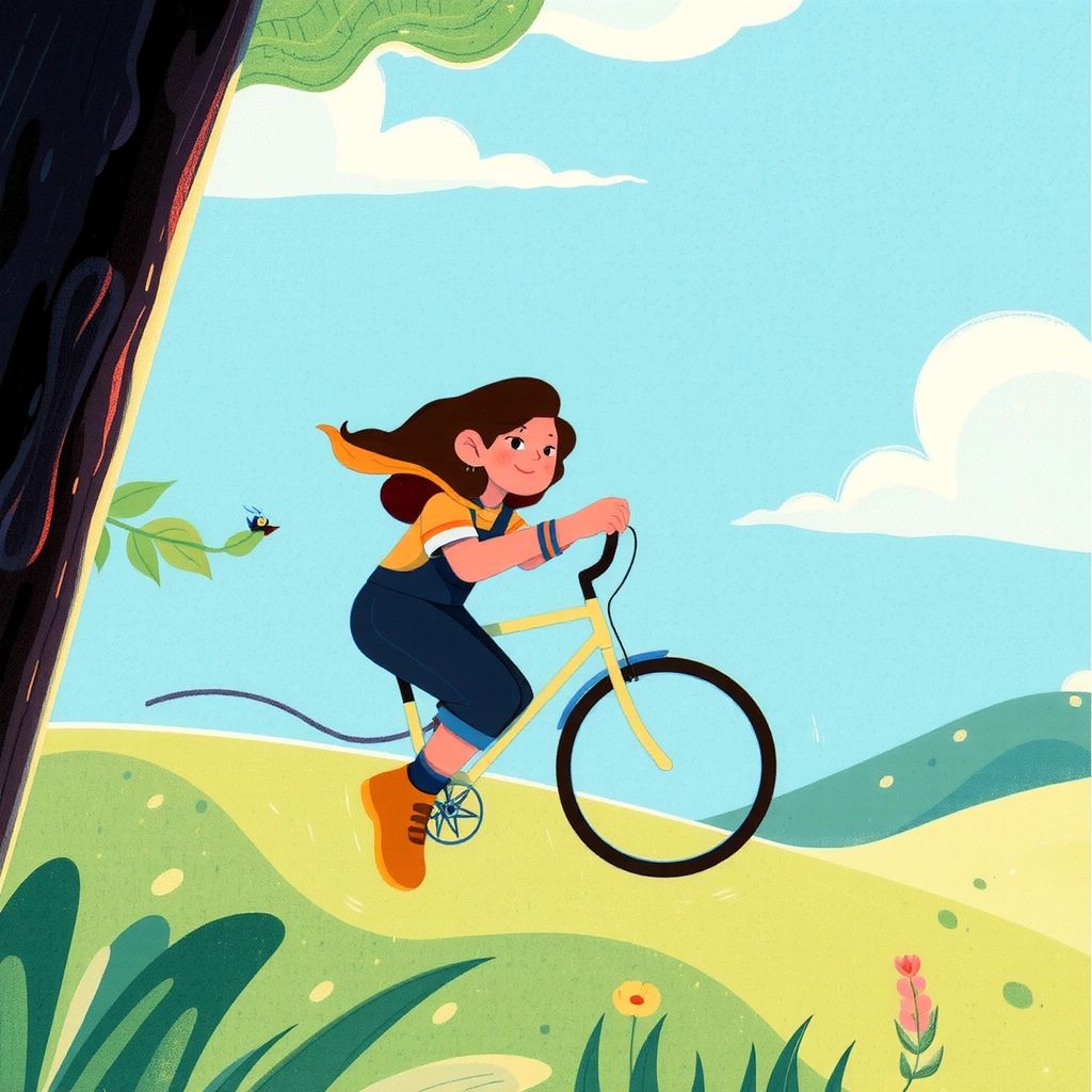 After days of effort, the bicycle was ready for a test flight. [Kathrine](CCT5XRW5) pushed it outside and, with a mixture of nerves and excitement, she pedaled hard. Suddenly, the bicycle began to lift off the ground!