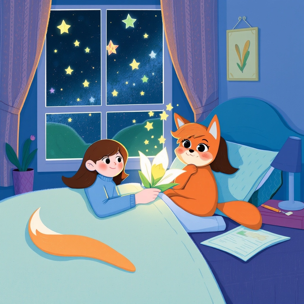 From that day on, Katie knew that magic wasn’t just out there—it was also right inside her. And as she drifted off to sleep, the magical flower softly glimmered, keeping her dreams bright and her adventures endless.