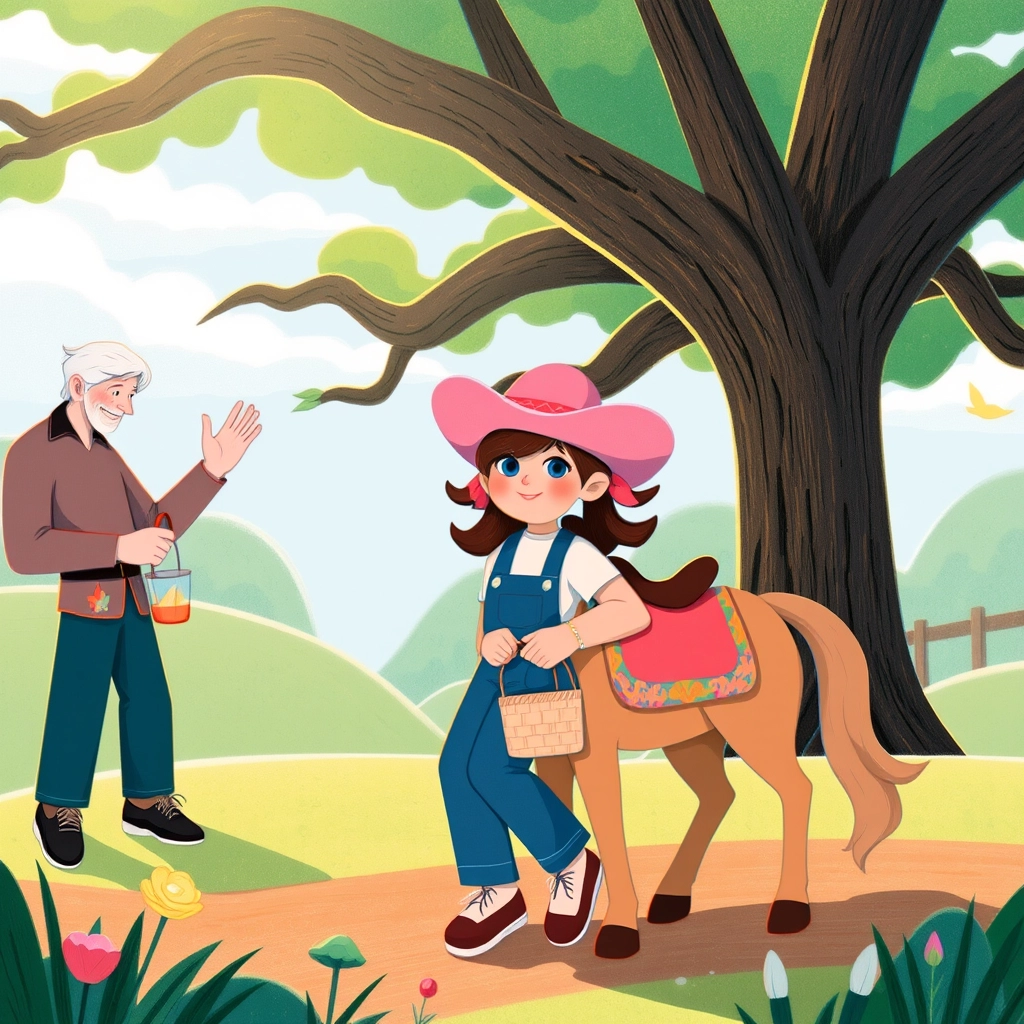 One day, Papaw had the most exciting surprise for her. A horse! And not just any horse—it was a magical pink horse with a shiny coat and a silky flowing mane that sparkled in the sunlight. [Katlynn](FHFRYNZT)’s eyes lit up with joy.